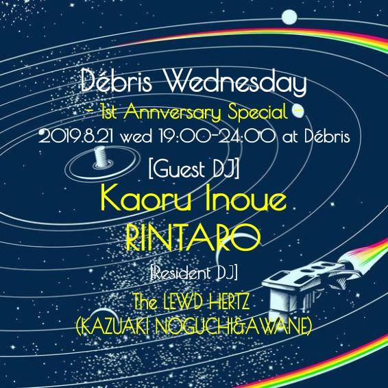 ’19.08.21.Wed → Debris Wednesday 21 8月 2019 — Filed Under: Schedule 2019.8.21[wed] 19:00-24:00 @Debris 渋谷区代官山町11-12 B1 Charge:¥1000 [Guest DJ] Kaoru Inoue (Seeds And Ground) RINTARO (探心音) [Resident DJ] The LEWD HERTZ (Kazuaki Noguchi&AWANE)